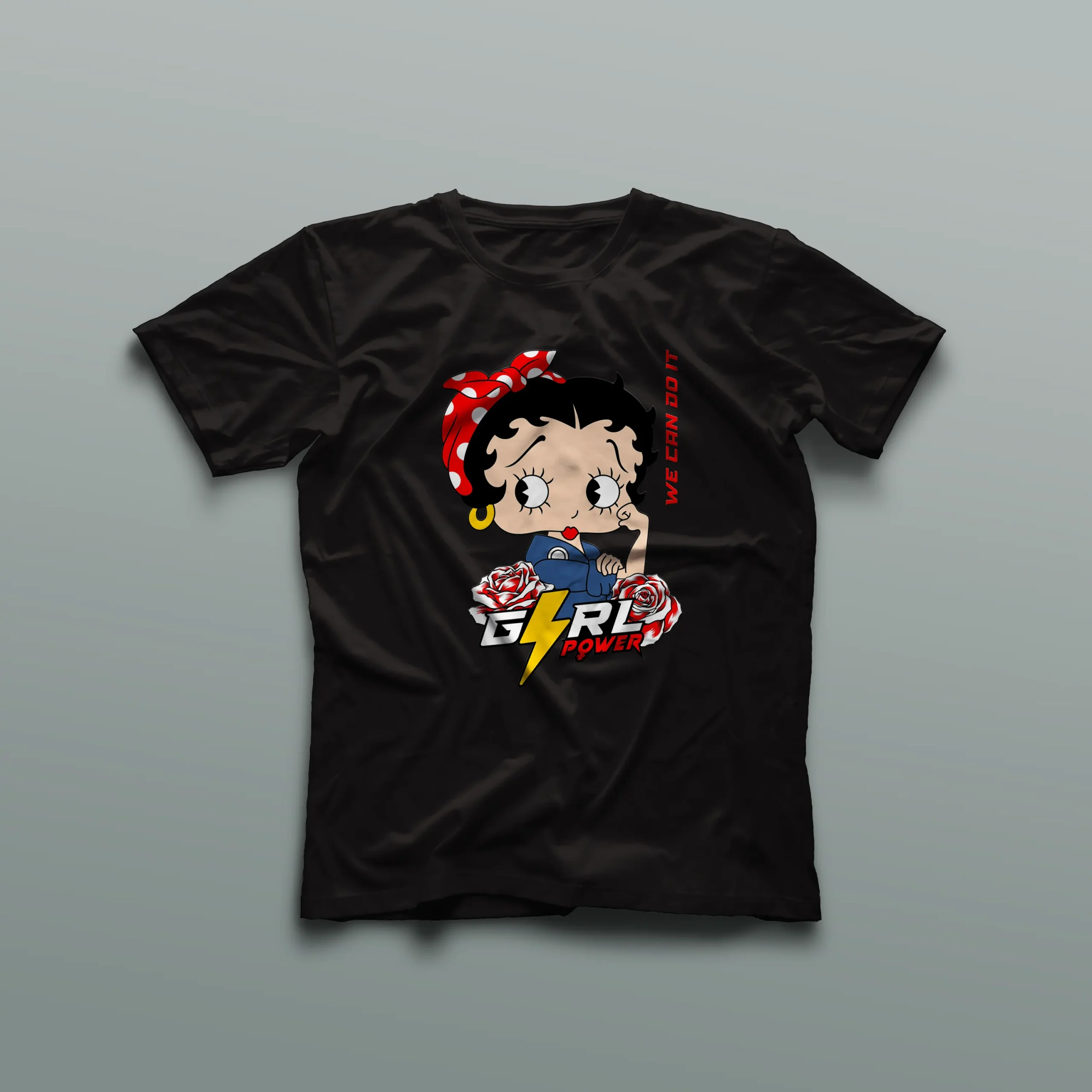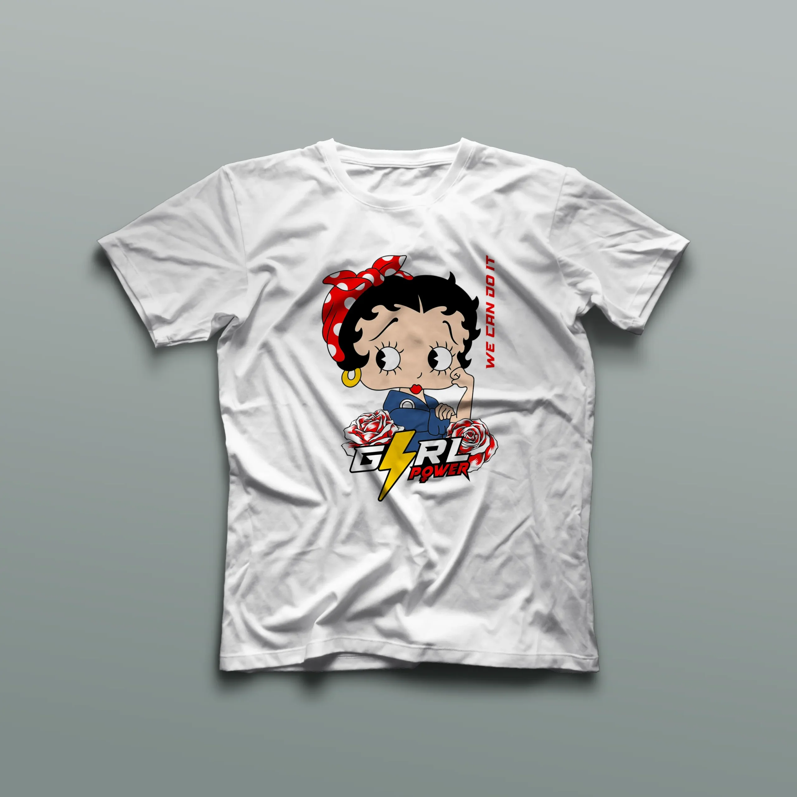 Sumérgete en el glamour y la atemporalidad con nuestra camiseta Betty Boop, donde el encanto retro se fusiona con la fuerza y la actitud empoderada de la mujer contemporánea. El diseño presenta a Betty Boop con un gesto que refleja determinación y valentía, resaltando la esencia única de la feminidad fuerte.