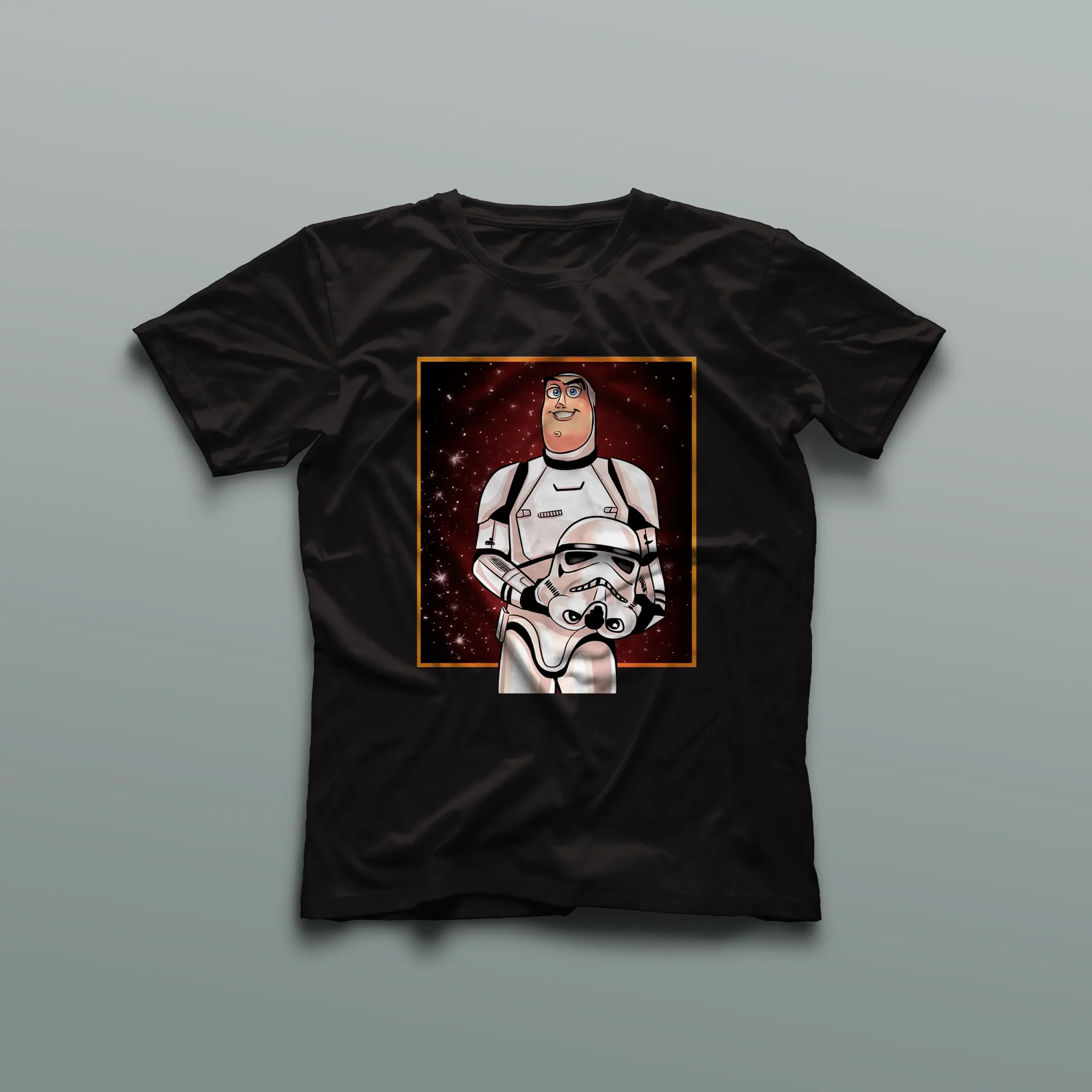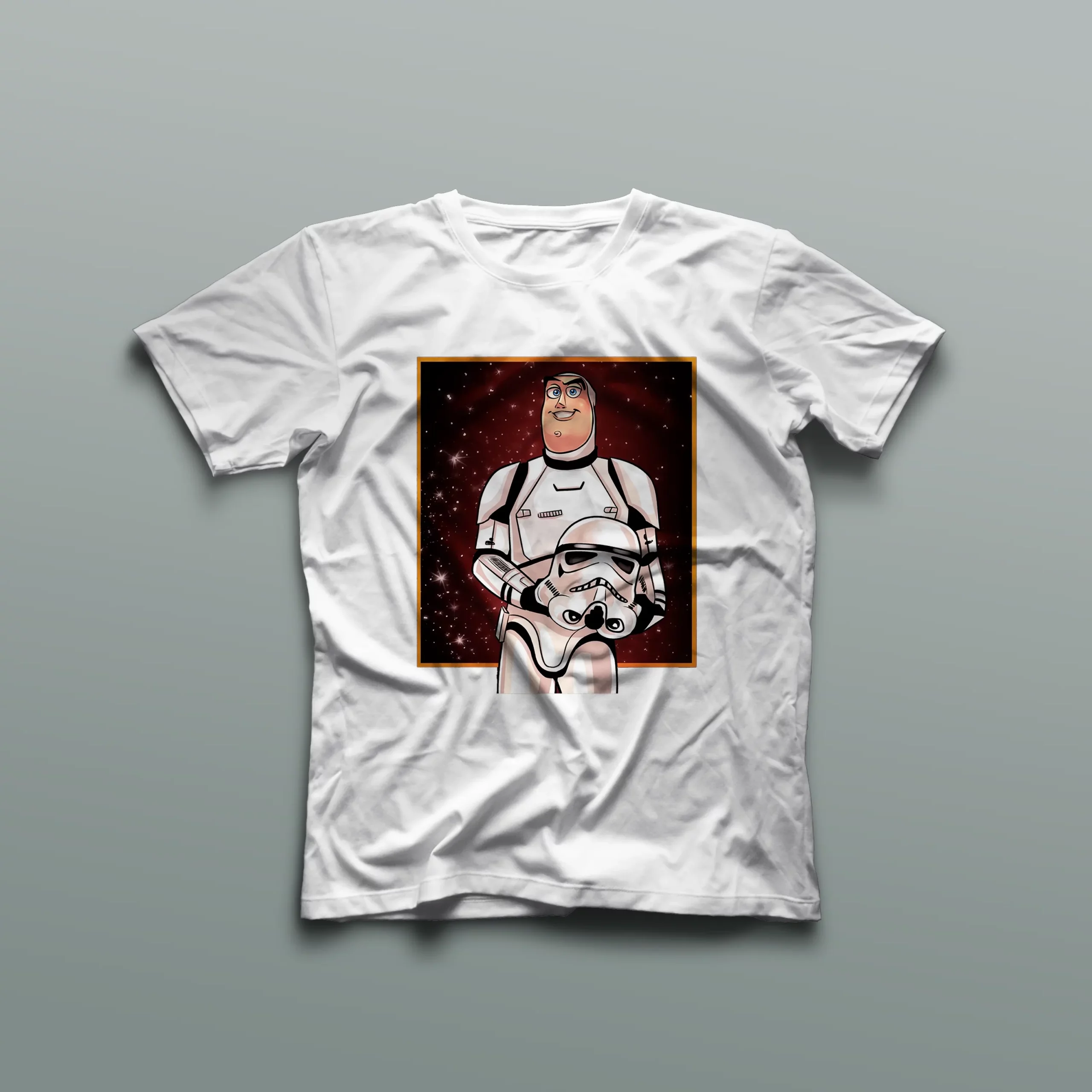 ¡Prepárate para la fusión épica con nuestra camiseta exclusiva «Buzz Stormtrooper»! Buzz Lightyear, el intrépido héroe de Toy Story, se une a la legión galáctica como un Stormtrooper de Star Wars. Esta camiseta no solo es moda, es una declaración de aventura y valentía que une dos mundos de la fantasía de una manera única.