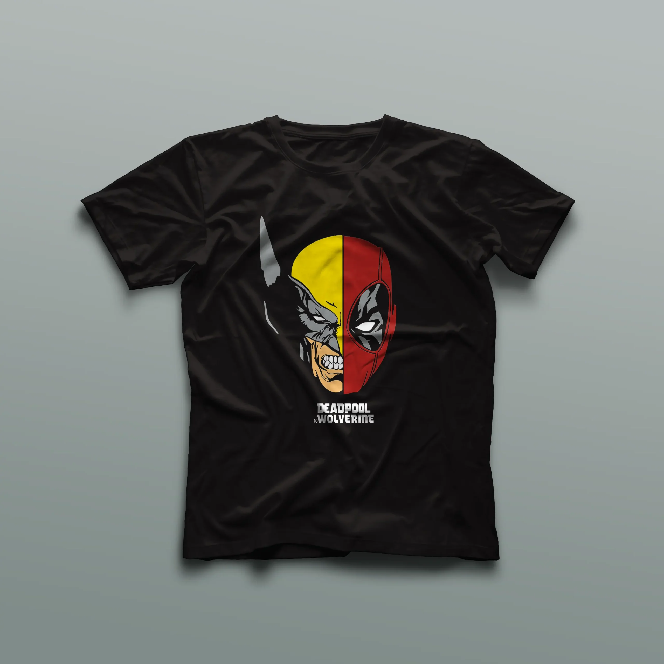El diseño de esta camiseta presenta una imagen única que captura la esencia de Deadpool y Wolverine en una forma que nunca has visto antes. La ilustración muestra la mitad de la cara de Deadpool al lado de la mitad de la cara de Wolverine, creando una composición visualmente impresionante que simboliza la dualidad y la fuerza de estos personajes. Los detalles meticulosamente elaborados en cada rasgo facial, desde la máscara inconfundible de Deadpool hasta las cicatrices y la mirada feroz de Wolverine, destacan con nitidez y precisión.