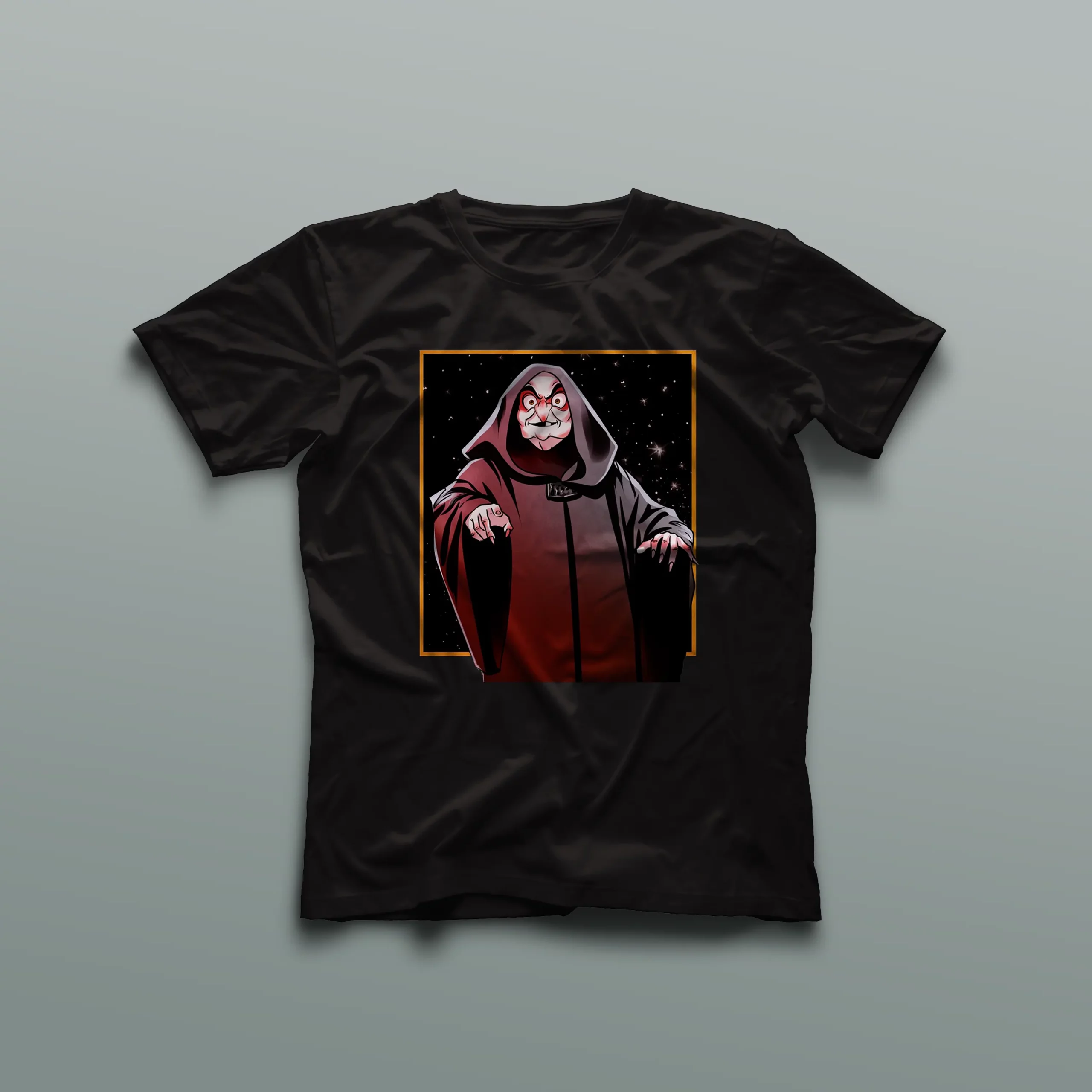 - Diseño Villano Exquisito: La camiseta presenta un arte impresionante que fusiona la esencia de la realeza malévola de Grimhilde con la intriga maestra de Palpatine. Una declaración de estilo que evoca poder y sofisticación.