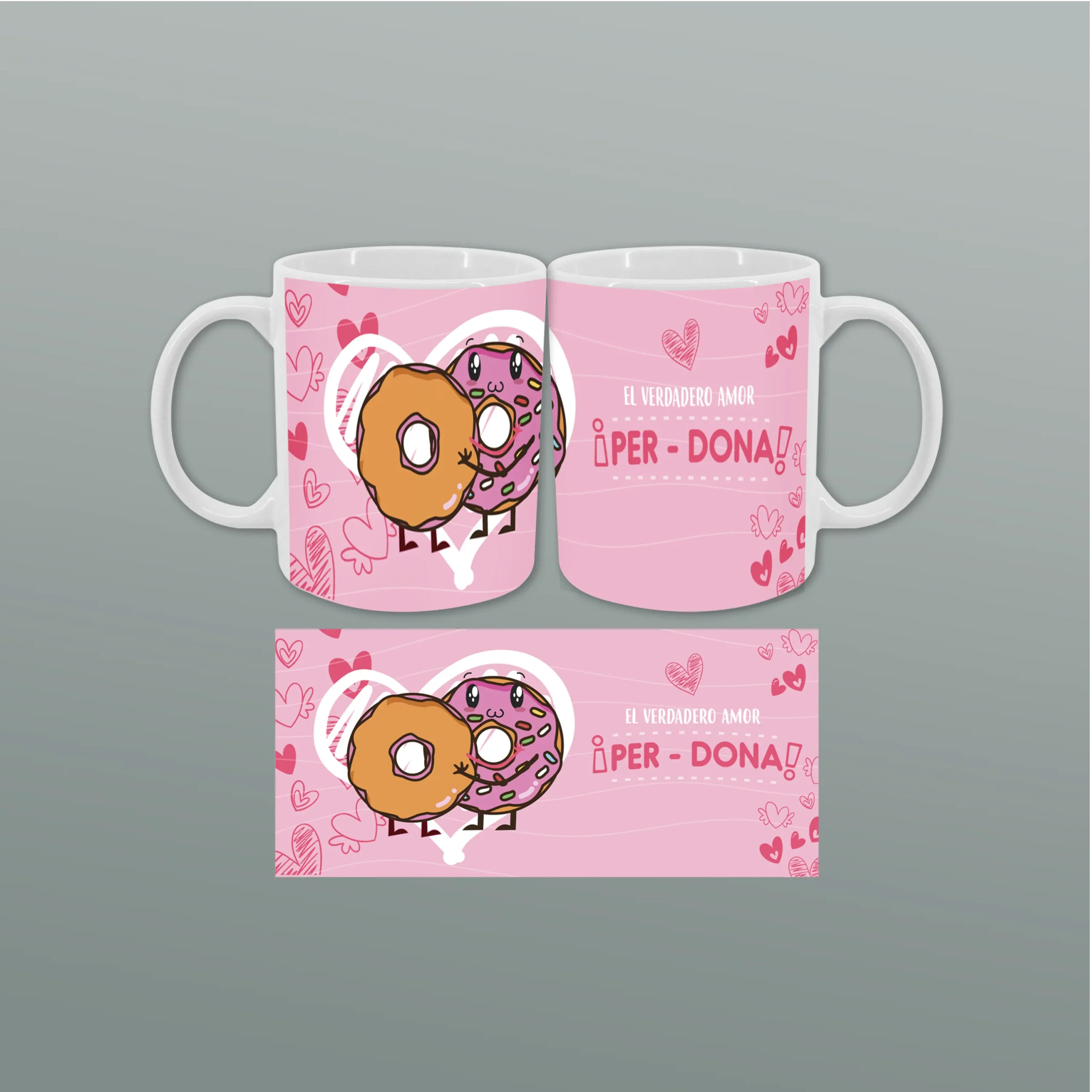 Envuelve tus momentos románticos con nuestra adorable taza de San Valentín con diseño de donuts, acompañada de la encantadora frase: «El verdadero amor per-dona». Esta taza no solo es un gesto dulce, sino también una declaración de amor que combina humor y ternura.